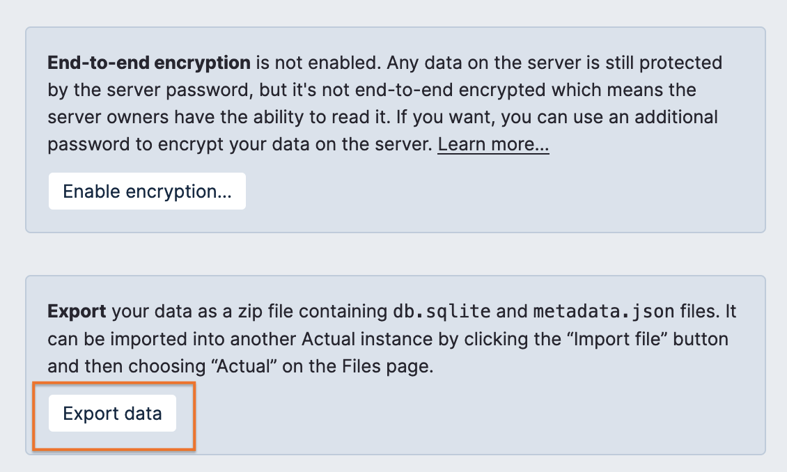 You can export your data from Actual at any time. To do so: