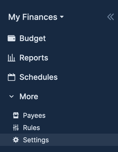Login to your budget, click 'More' > 'Settings'