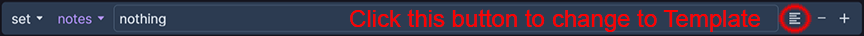 - Click the Template toggle button on the left side of the action, just to the right of the -/+ symbols. The action must be of type set notes or set amount before the Template toggle button appears.