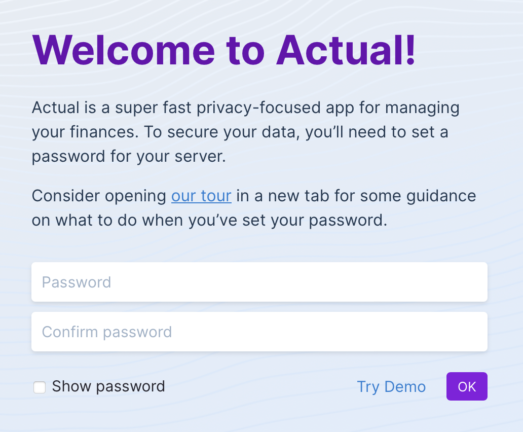 Now that Actual has been launched, you should be able to navigate to Actual using the URL provided by the Fly command above earlier.