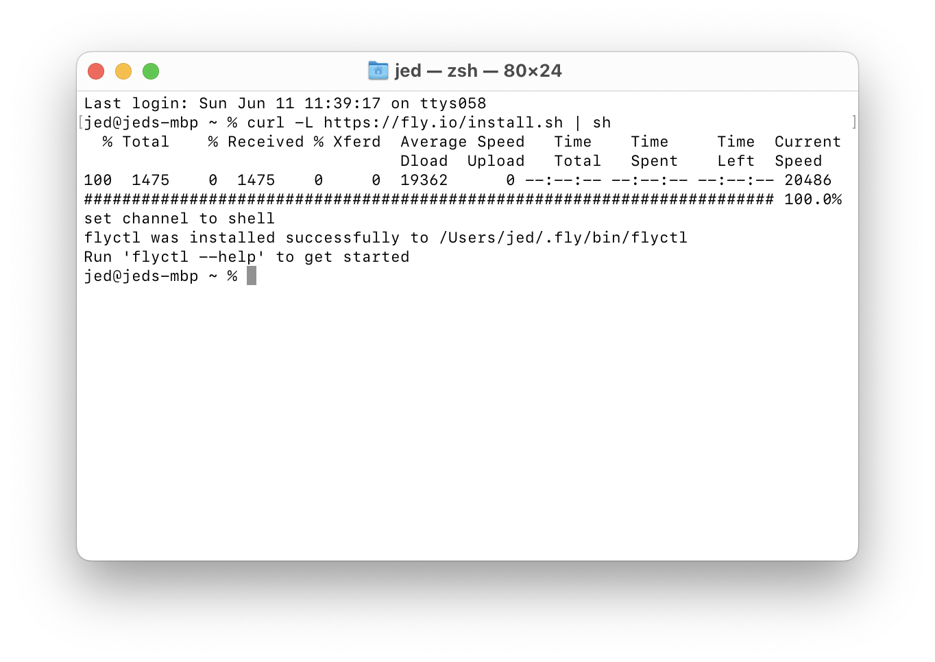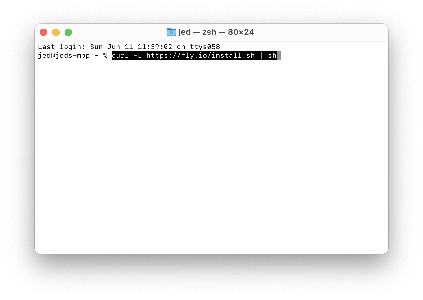 Enterkey on your keyboard after you’ve typed it in.curl -L https://fly.io/install.sh | sh