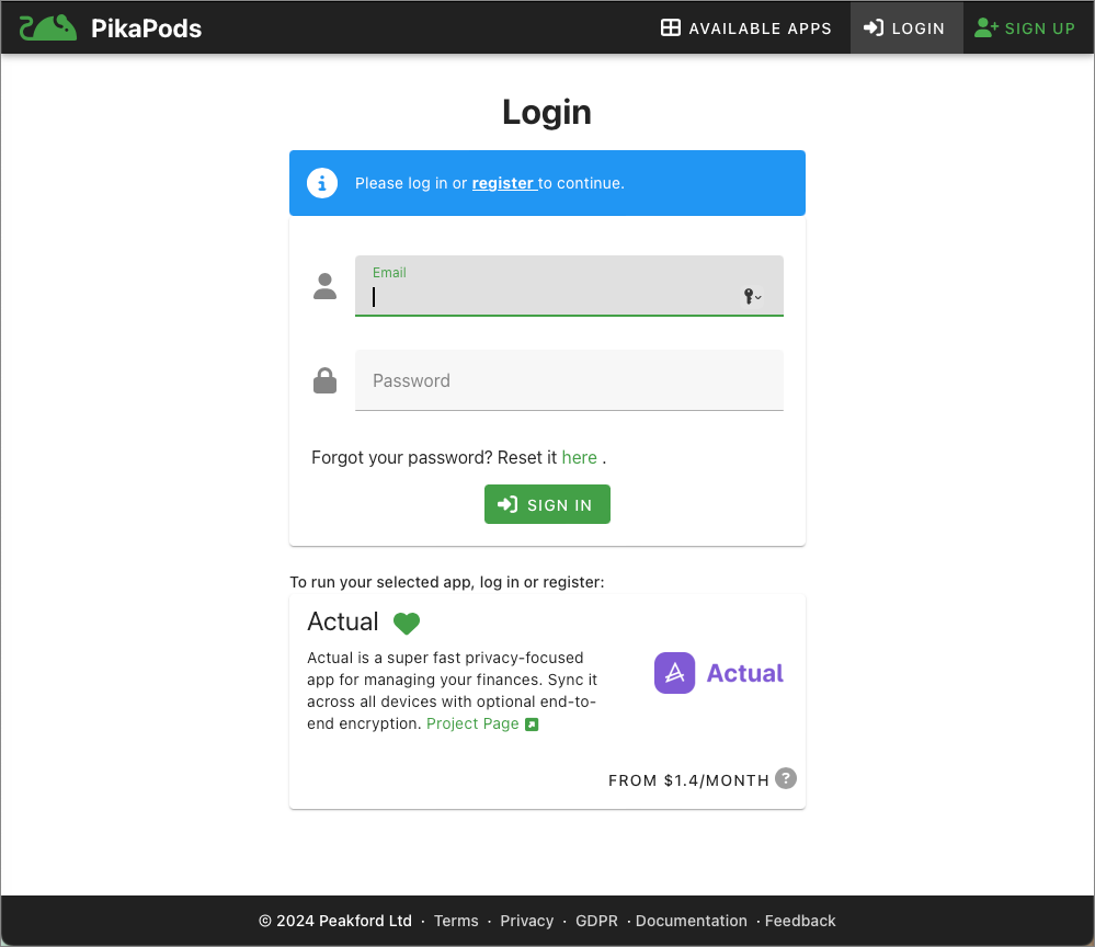 Using PikaPods is also a simple way to support the development of Actual Budget, as PikaPods will share some of its revenues with Actual for customers using their Actual Budget pods.
