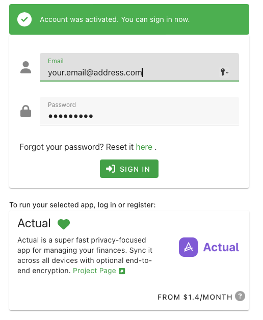 Click here to go to PikaPods setup for Actual.